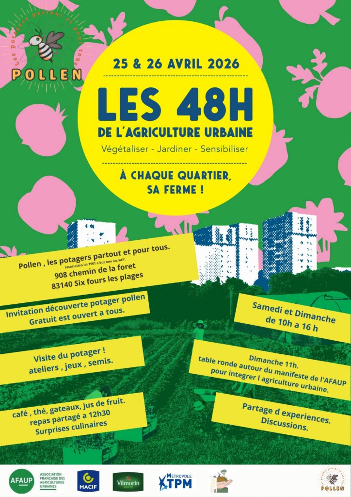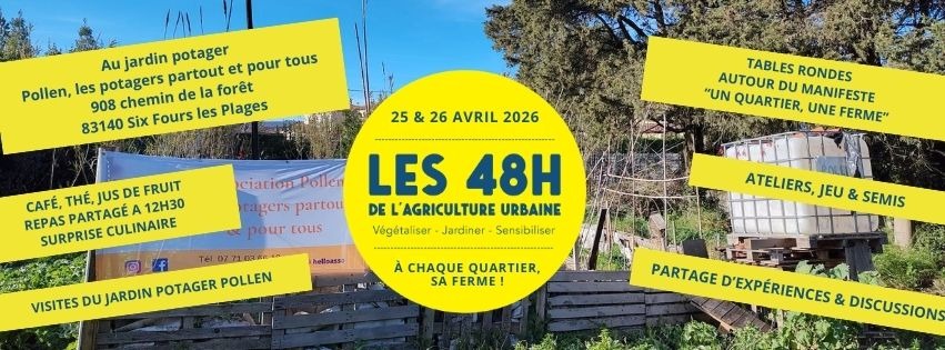 Les 25 et 26 avril 2026, l’association Pollen, les potagers partout et pour tous, organise à Six-Fours-les-Plages un week-end dédié à l’agriculture urbaine dans le cadre de l’événement national Les 48h de l’agriculture urbaine.